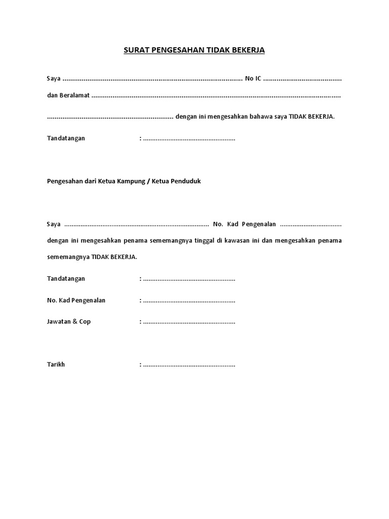 Surat Pengesahan Tidak Bekerja Pdf